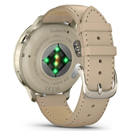 Garmin Venu 4 - 41 mm Lunar Gold with Bone Silicone Band and Light Sand Leather Band (010-03013-03)